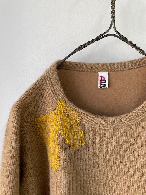 この感じを私達は大変気に入ってまして、この毛玉感に山中氏のハンドステッチが走ったら可愛い♡だろうな〜って。